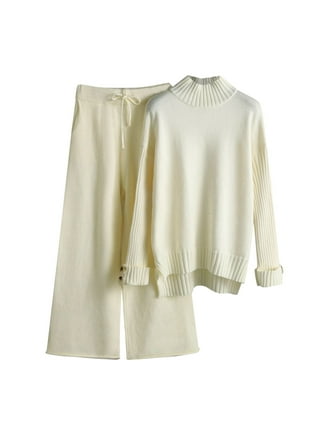2 Piece Outfits Women Sweater Sets Lounge Sets Silk Oversized Sleeve Knit Pullover Tops Wide Leg Pants Tracksuit Sets Amazon Co Uk Fashion
